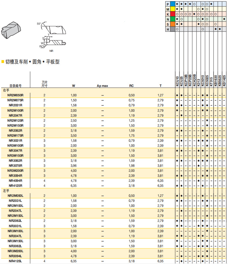 美国肯纳刀具山东代理NR3047L KCU25圆角切槽刀片