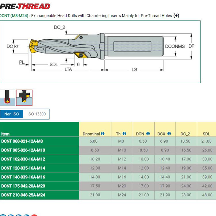 DCNT (M8-M24) 带倒角刀片的可换头钻头,主要用于预制螺纹孔