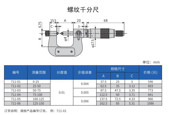 哈量量具 哈量螺纹螺纹千分尺0-25 25-50 50-75