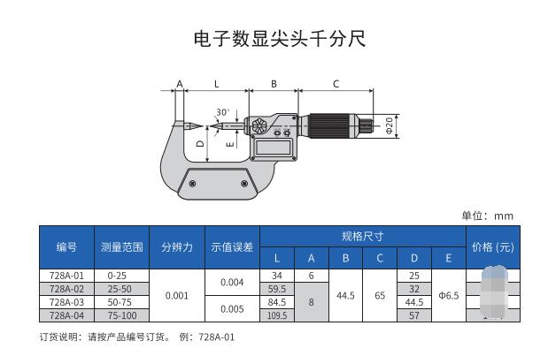 哈量尖头千分尺 数显尖头千分尺0-25 25-50 50-75 75-100