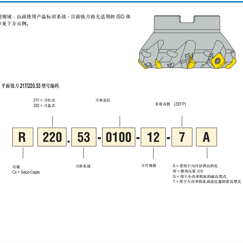 瑞典山高刀盘 φ125面铣刀盘R220.53-0125-12-8A
