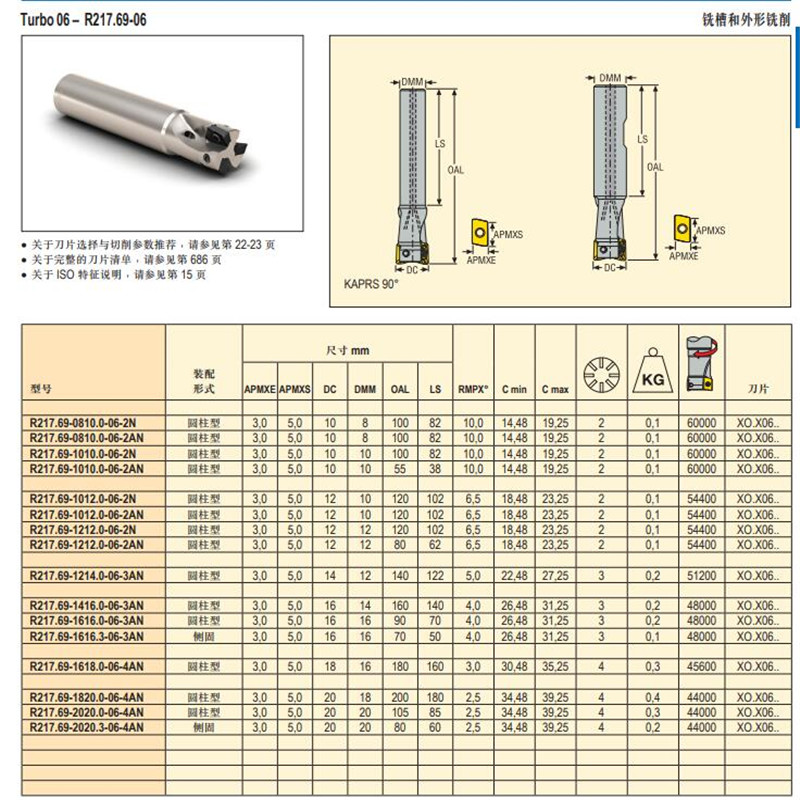 现货批发山高数控刀具R217.69-0810.0-06-2AN方肩铣刀
