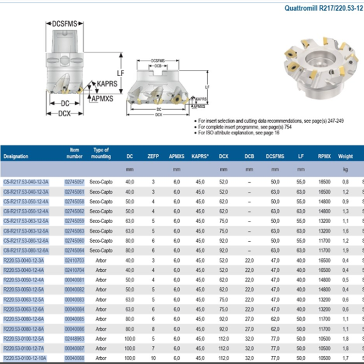 瑞典山高刀盘 φ125面铣刀盘R220.53-0125-12-8A
