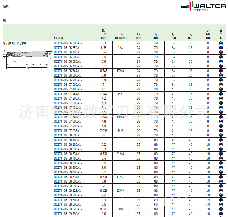 潍坊瓦尔特合金钻头 DC170-03-07.100A1-WJ30EJ 加工淬硬钢